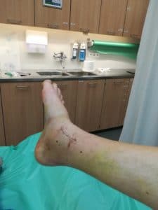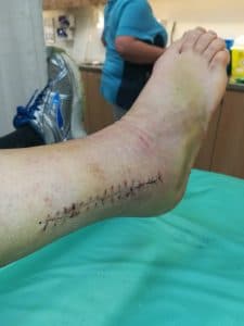 Uiteindelijk bleken de wonden er mooi uit te zien en de hechtingen konden verwijderd worden. Maar wat is mijn onderbeen al mager geworden!!! Atrofie, noemen we dat in de medische wereld. Afname van spierweefsel door langdurige inactiviteit. Ik merk dat ook in mijn dijbenen. Als ik mijn linker dijbeen vastpak dan voel ik spierweefsel, en als ik mijn rechter dijbeen vastpak dan voel ik gewoon mijn bot onder mijn huid. Echt heel bizar! En ja, natuurlijk doe ik oefeningen. Optrekken van mijn tenen, het klauwen van mijn tenen, vanuit buiklig mijn voetzolen richting het plafond bewegen i.v.m. de aanspanning van mijn bilspieren, het strekken van mijn knie i.v.m. de aanspanning van mijn dijbeenspieren… Maar laten we eerlijk zijn… Dat kan 10 km hardlopen, 1u paardrijden of 20x per dag de trap in de fysiotherapiepraktijk op en af hollen, niet compenseren…